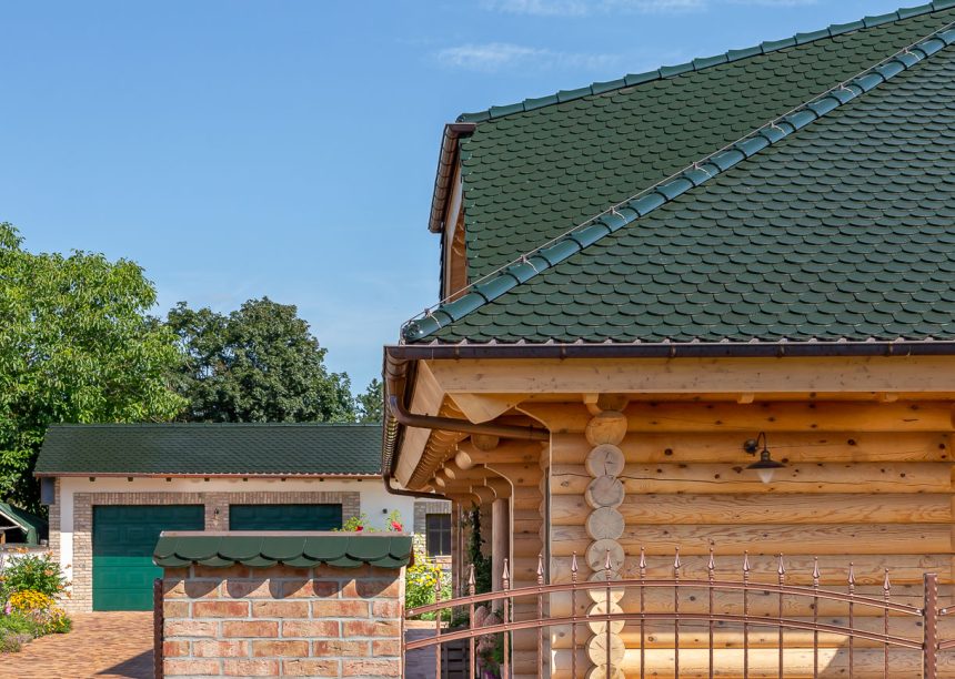 Der tannengrüne Biberschwanzziegel schafft eine hochwertige Dachansicht und harmoniert perfekt mit der markanten Holzfassade.