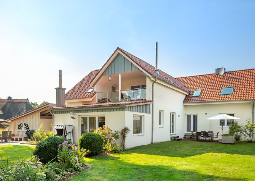 Entdecken Sie das einladende Ambiente eines gemütlichen Einfamilienhauses, das durch die Kombination von Holzelementen und dem altroten Flachdachziegel J13v entsteht.