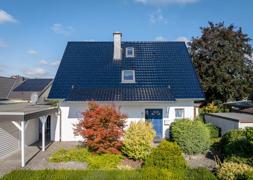 Ein besonderes Dach in marineblau! Lassen Sie sich von unserem Flachdachziegel J13v inspirieren.