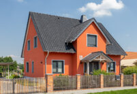 Zu dieser auffälligen Farbe der Hausfasse wurde der Flachdachziegel J13v in schiefergrau matt glasiert hervorragend ausgewählt. Dieser verleiht dem Objekt technisch wie optisch einen hochwertigen Charakter und hebt die charakteristische Farbe der Fassade einmal mehr hervor.