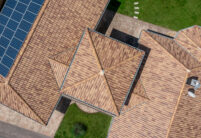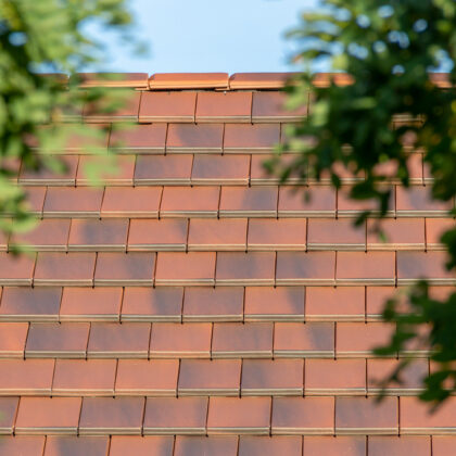 Auf dem Dach des u-förmigen Bungalows unsere Romanischen Pfanne in der Sonderserie Bella Casa. Ein tolles Farbschema in erdigen Farbtönen.